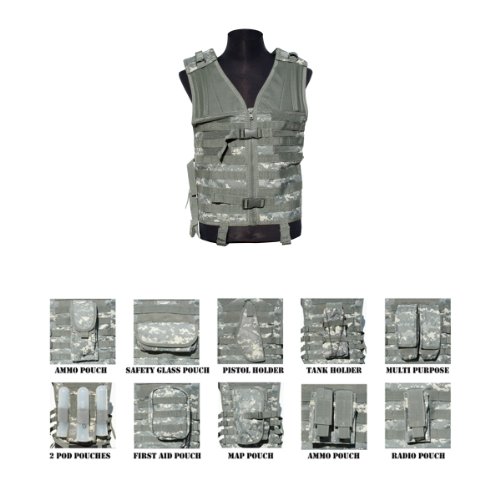 Description The Gen X Global TXG Flak Jacket Modular Vest features a slew of pouches for carrying all your gear and tubes of paintballs, and tons of MOLLE loops for mounting just about anything you can think of. Additionally this vest is padded for extra protection when storming the enemy. One size fits all thanks to the adjustable shoulder and side straps. Features Comes with 11 attachments.