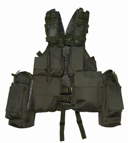 - Padded Adjustable Shoulder Straps Magazine Pouches Binocular Pouch 4 Chest Pockets Two Large Side Accessory Pouches 6 Rifle and Pistol Mag Pouches